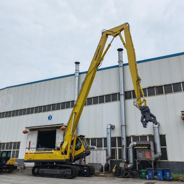 三節(jié)臂是為延長挖掘機工作范圍根據(jù)工況要求而設計制造的挖掘機前端工作裝置,不改變原有挖掘機的使用性能,采用高強度合金板制造,極大提高作業(yè)范圍,工作范圍 13米-30米挖掘機加長臂使用范圍較廣、功能較多,其本具有挖掘、破碎、清鉤、鉆孔、推土等功能,從某種角度上來說切實的實現(xiàn)了一機多用的功能。挖掘機三節(jié)臂提升了挖掘機的機械化程度,機身 360°無壓力旋轉(zhuǎn)更是為設備的后續(xù)施工提供了便捷,此外該設備能夠在一些相對狹小的區(qū)域內(nèi)工作,更是增加了施工的便利性。