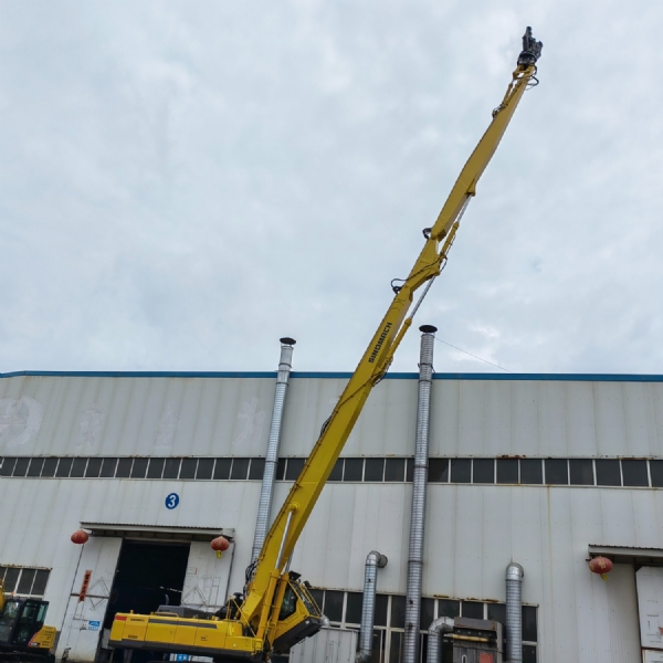 40-50噸位挖掘機加長臂,可加長到26米,其配置為:挖斗1個、鏟斗油缸1支、銷軸6支、 高壓軟管4條、黃油管3條、連桿總成1套、運輸連桿1套、加長大臂(14米)、加長小臂(12米)。